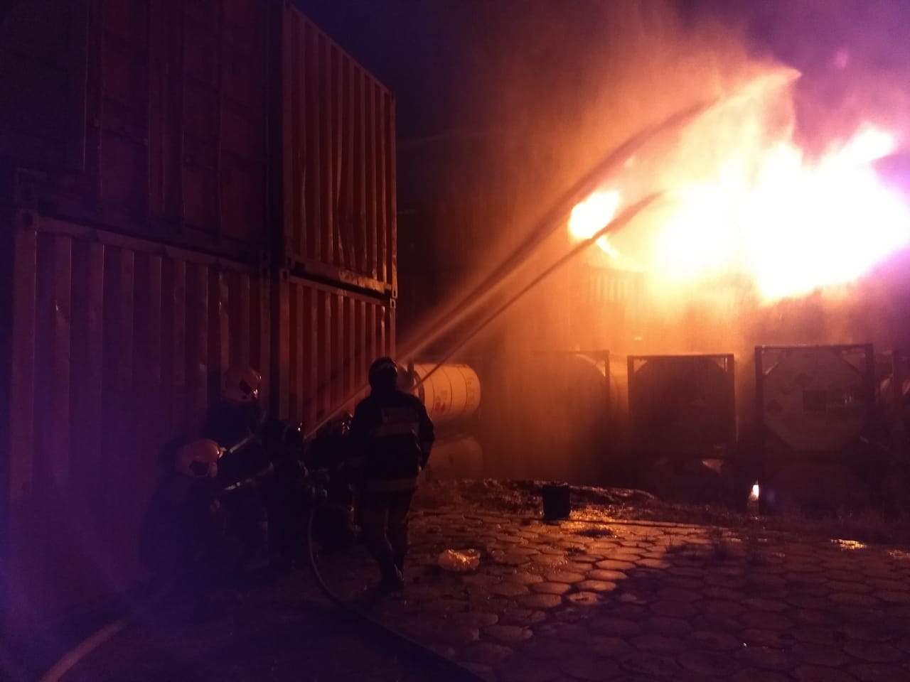 São 35 contêineres dispostos próximos no local, com a informação de que há 14 contêineres com gás, e em alguns com ácido sulfúrico. Não há informações sobre vítimas, nem sobre o número de contêineres queimados.