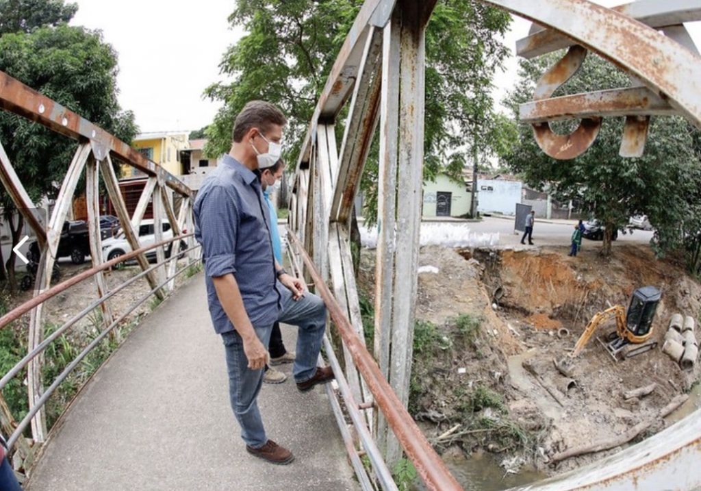 O prefeito de Manaus, David Almeida, e o vice-prefeito Marcos Rotta vistoriaram, na manhã desta terça-feira, 9/9, a obra emergencial de recuperação da drenagem profunda realizada pela Secretaria Municipal de Infraestrutura (Seminf), no igarapé do Passarinho, localizado no bairro Monte das Oliveiras, zona Norte.