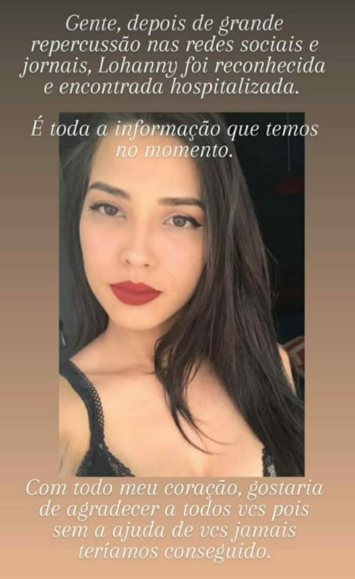 A atriz e modelo Lohany Façanha Martins, de 26 anos, desesperada desde o dia 2 de fevereiro,  foi encontrada na manhã desta quinta-feira (11), após vários apelos da família nas redes sociais. Mas o mistério continua. A jovem de Macapá foi localizada em um hospital do Rio de Janeiro.