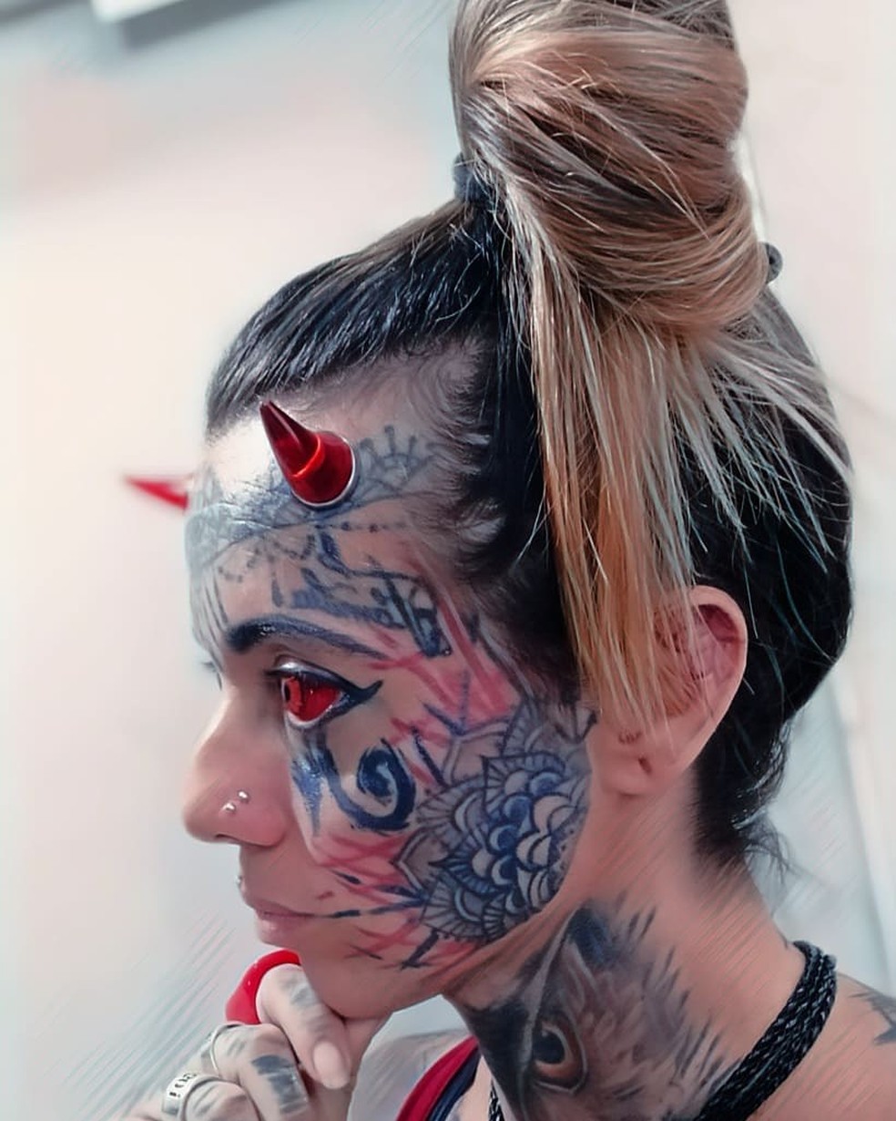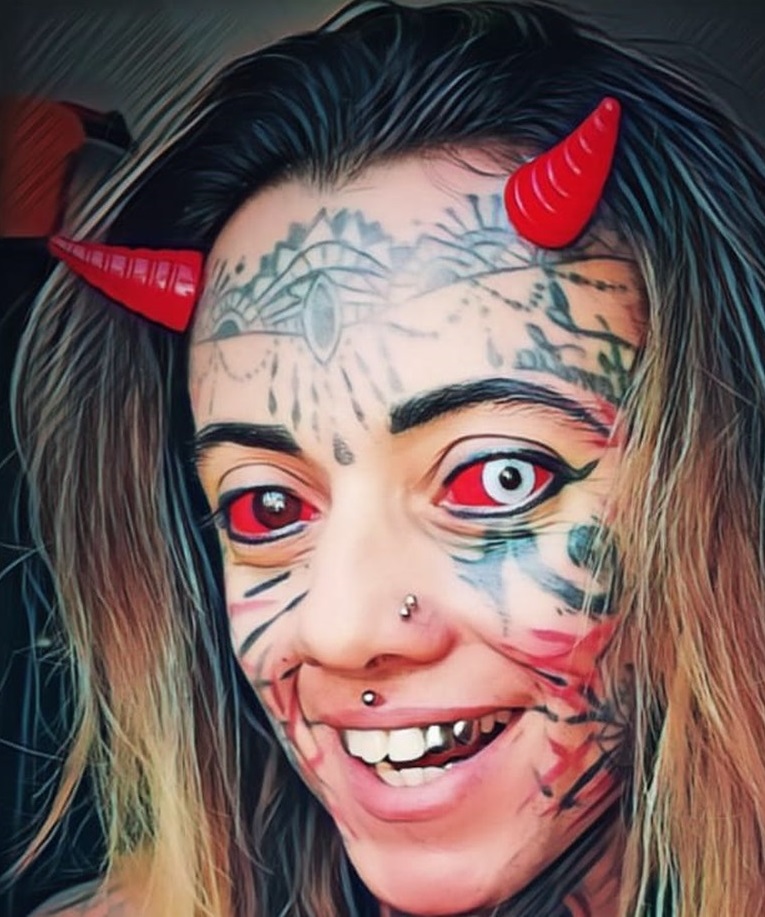 “Mulher Demônia” transforma o corpo para ficar a cópia do Capeta!