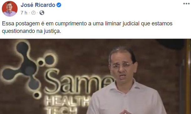 Este vídeo publicado na rede social do candidato José Ricardo (PT) a mando da Justiça está dando o que falar. É um direito de resposta do grupo Samel e da família Nicolau, que tem o Ricardo Nicolau como candidato.